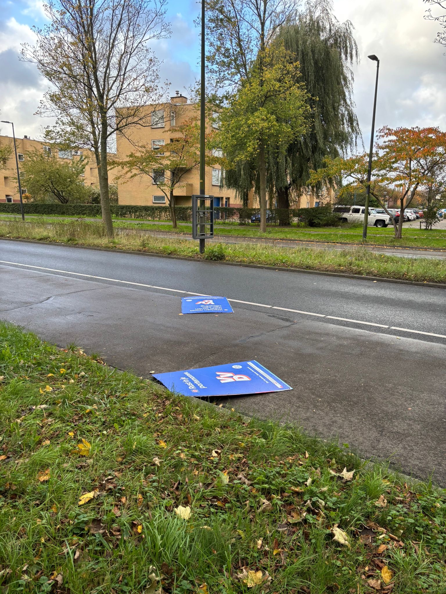 Had jij ze al gezien, onze borden? Afgelopen nacht zijn in Maassluis bijna alle VVD-verkiezingsborden verwijderd en vernield.